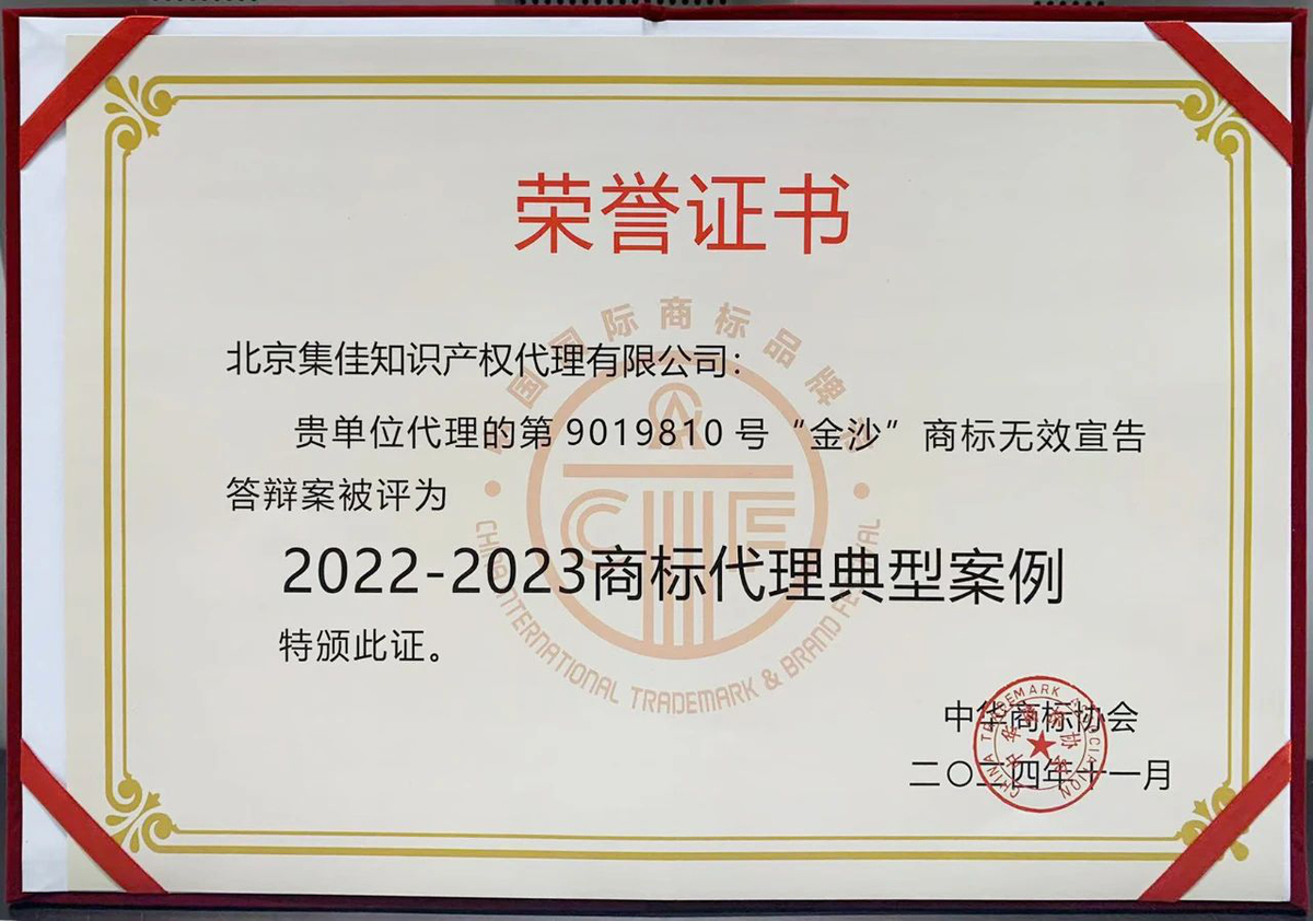 2024年11月24日下午,在商标节经典论坛之一的商标典型案例评析会议上,兰博电竞代理的“金沙”商标权无效宣告答辩案入选“2022-2023商标代理典型案例”。